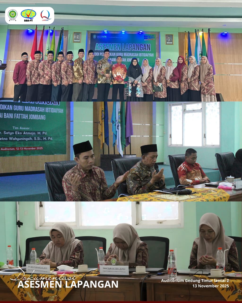 Jombang, 13 November 2025 – Program Studi Pendidikan Guru Madrasah Ibtidaiyah (PGMI) Institut Agama Islam Bani Fattah (IAIBAFA) Jombang telah sukses melaksanakan kegiatan Asesmen Lapangan (AL) Akreditasi oleh Lembaga Akreditasi Mandiri Kependidikan (LAMDIK) pada tanggal 12 hingga 13 November 2025. Kegiatan ini berjalan dengan lancar dan kondusif, didukung penuh oleh seluruh civitas akademika IAIBAFA, menunjukkan kesiapan prodi dalam menjamin kualitas pendidikan.
